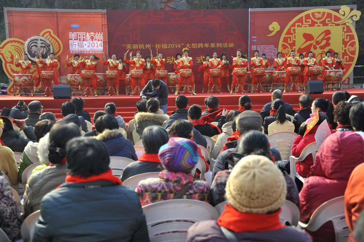 祈福活動啟動儀式上,一個象征喜慶吉祥和美好祝愿的“西湖福”在觀眾席中徐徐展開,印有“西湖福”的大風(fēng)箏在金色彩紙的簇?fù)碇衅痫w,現(xiàn)場的市民代表揮舞起各自手中的“福”字貼,“幸福舞動”廣場舞表演在舞臺上躍動……