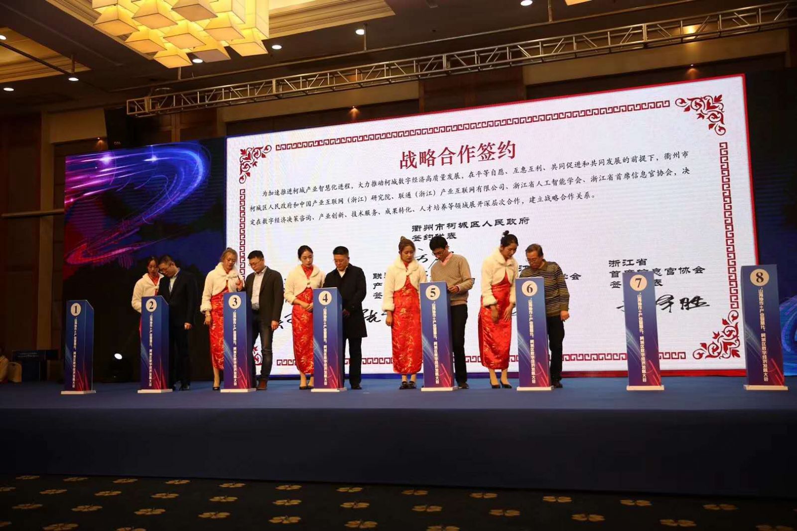 活動名稱:山海協(xié)作+產(chǎn)業(yè)智慧化—柯城區(qū)數(shù)字經(jīng)濟發(fā)展大會 活動地點:衢州國際大酒店 活動時間:2019.1.07 會議人數(shù):300+ 服務項目:設計、執(zhí)行