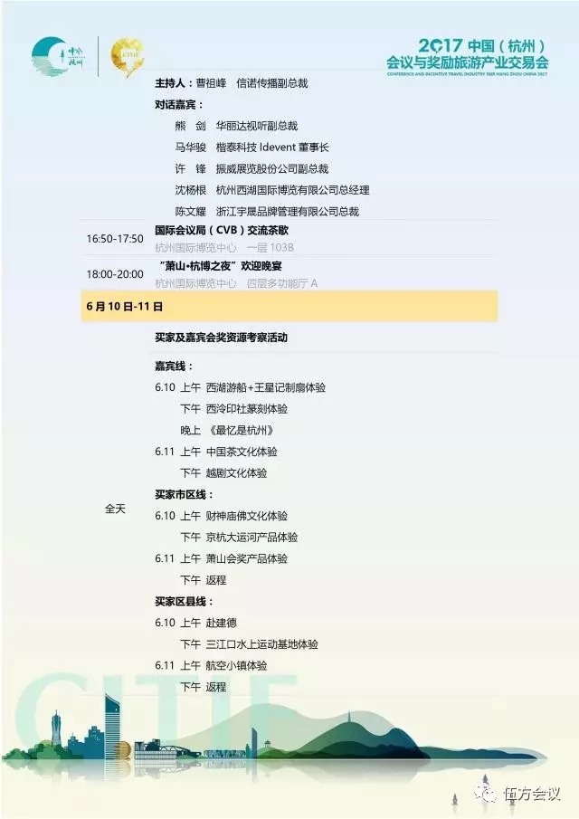 特別邀請(qǐng)到亞太、歐美、非洲等主要城市會(huì)議旅游局、駐華機(jī)構(gòu)及國(guó)際會(huì)獎(jiǎng)旅游組織相關(guān)負(fù)責(zé)人,相聚杭州,探討行業(yè)發(fā)展。