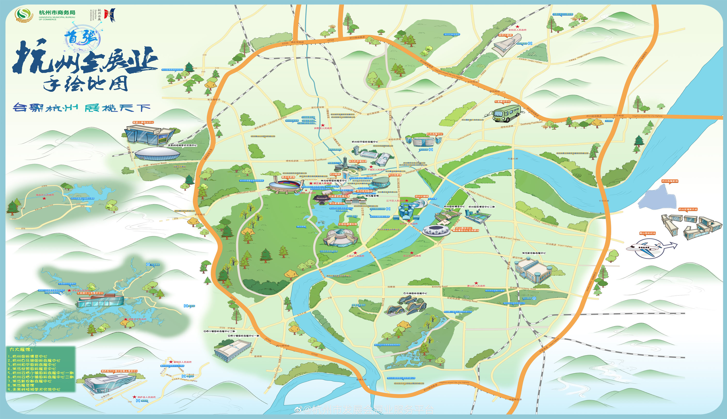 以“會(huì)展驅(qū)動(dòng)·城市復(fù)蘇”為主題的2020年杭州國(guó)際日活動(dòng)之“數(shù)字杭州”會(huì)展合作大會(huì)9月2日成功舉辦。會(huì)上舉行了“數(shù)字直播專業(yè)委員會(huì)”成立儀式,首發(fā)杭州會(huì)展地圖,以手繪圖的形式生動(dòng)展示杭州會(huì)展的重點(diǎn)場(chǎng)館、設(shè)施。